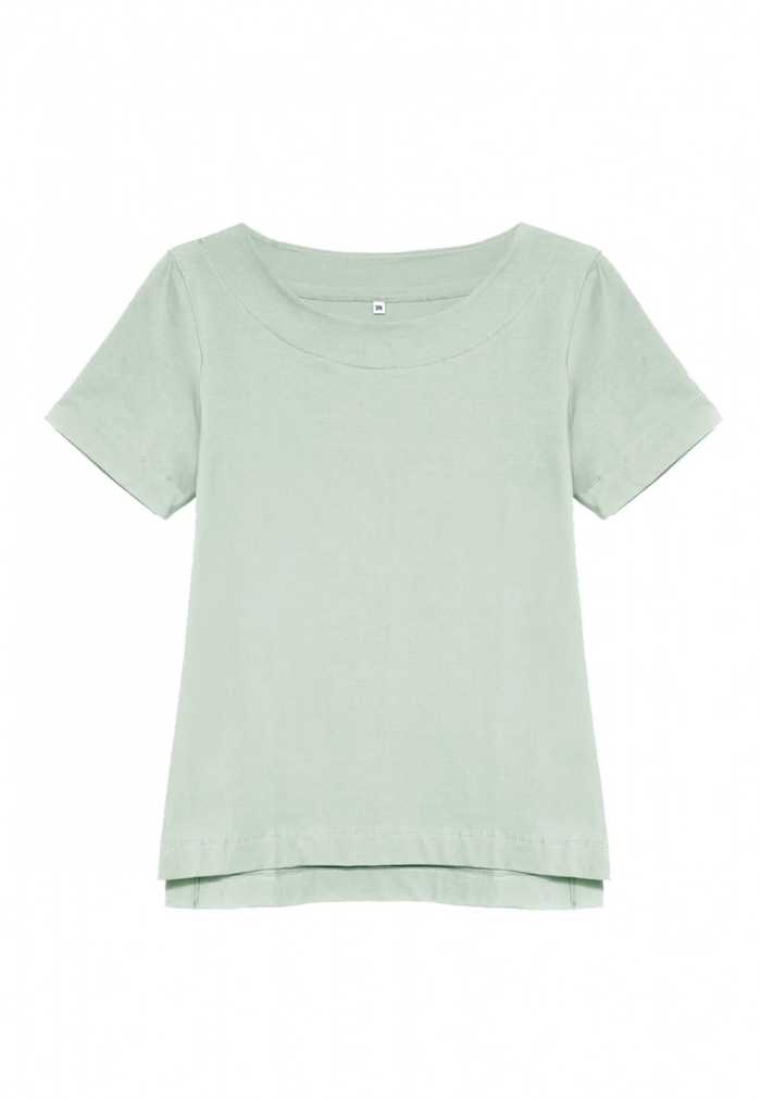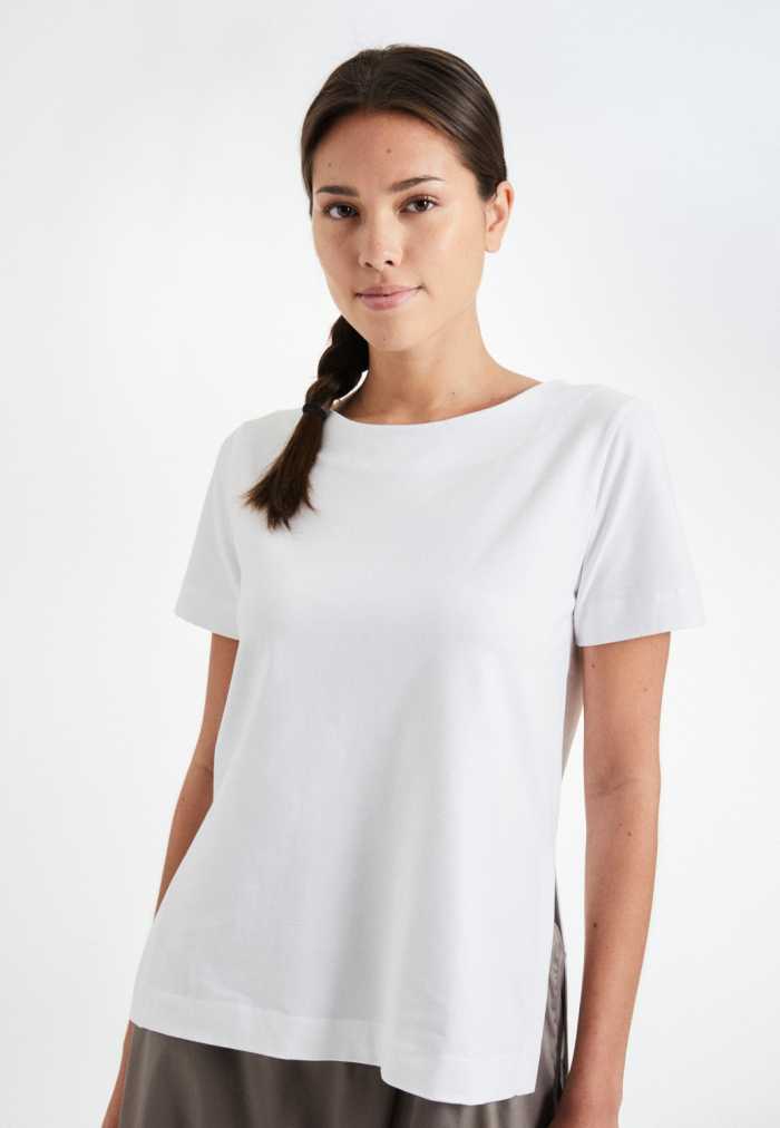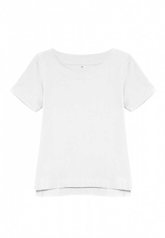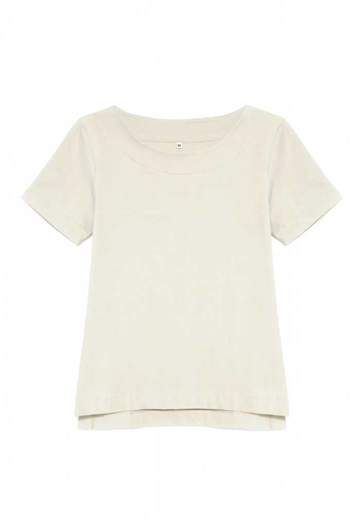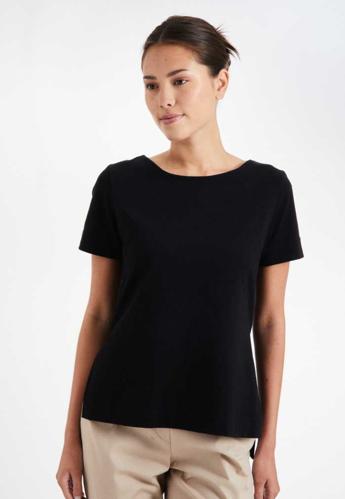 T-shirt with a classic round neckline and short sleeves.