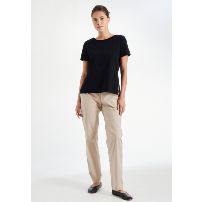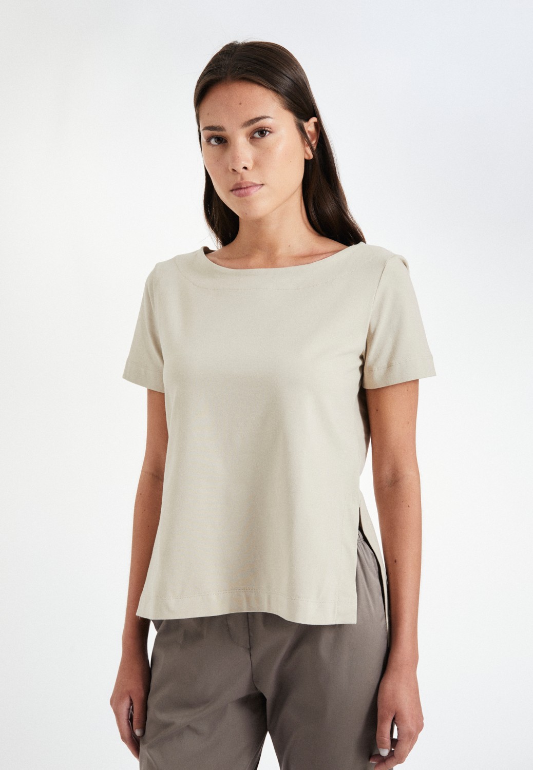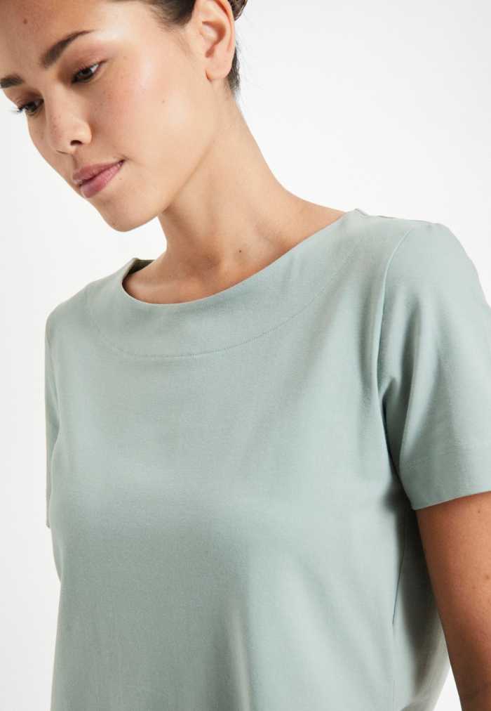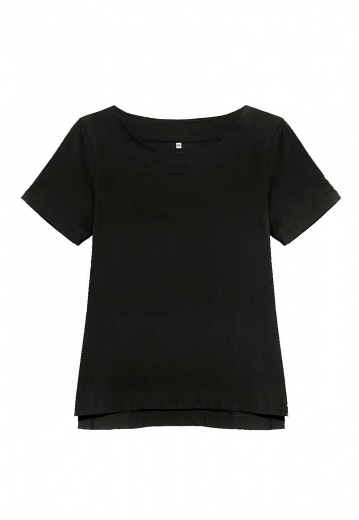 T-shirt with a classic round neckline and short sleeves.