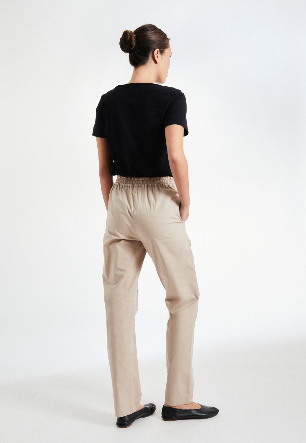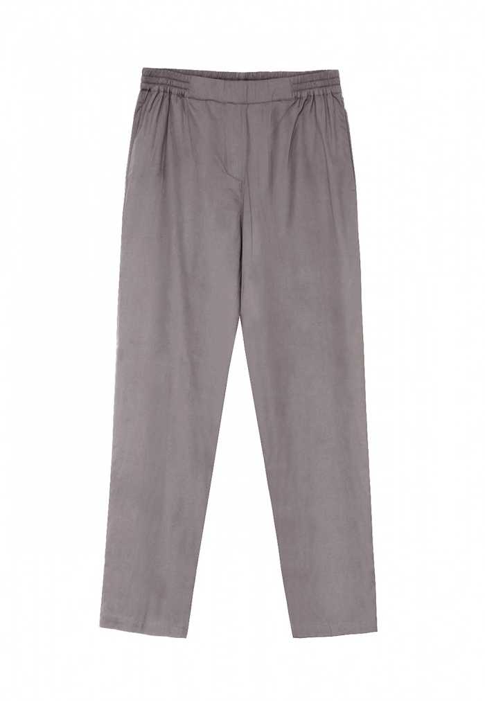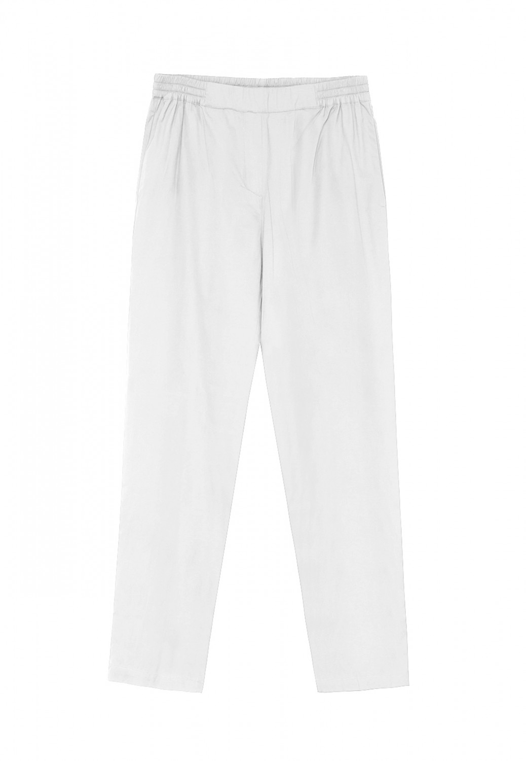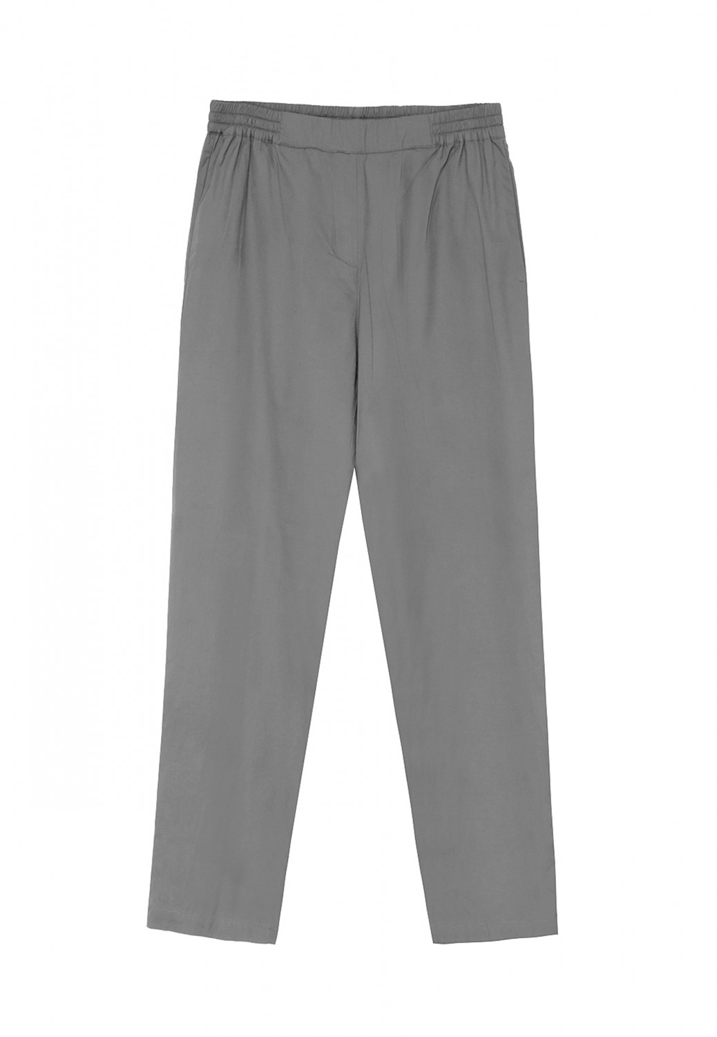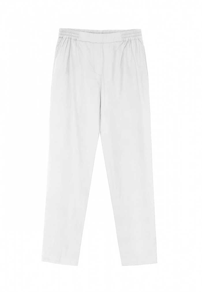 Straight-leg women’s pants featuring a smooth front waistband and elastic back.