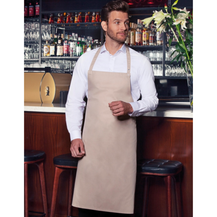 High-quality apron with adjustable 60 cm neck strap and snap fasteners.