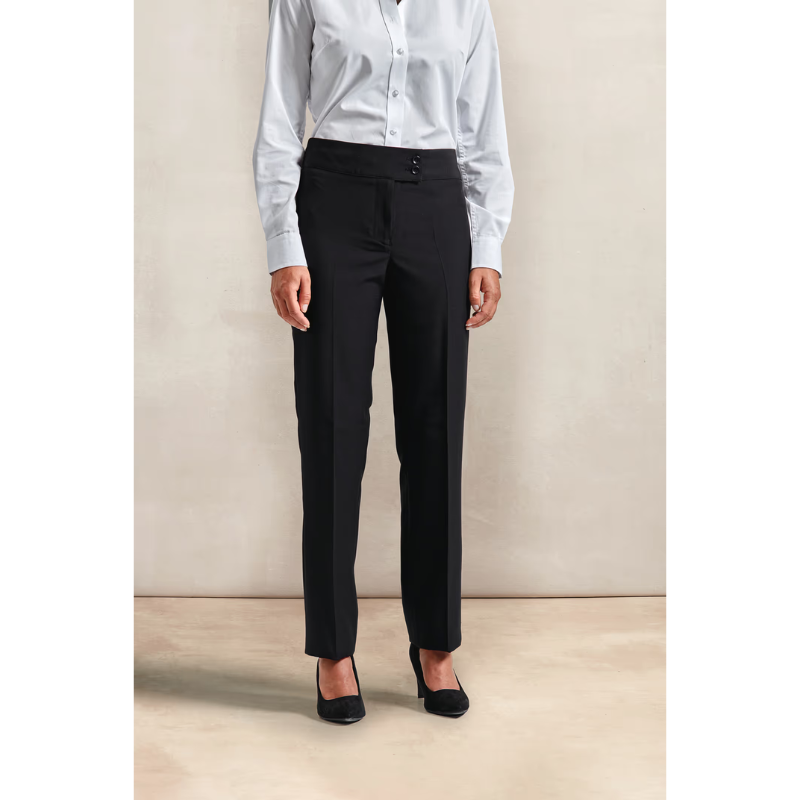 Straight-leg pants for spa or beauty center, designed without pockets for a flattering fit.
